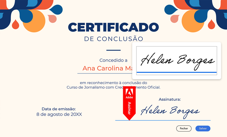 Assine documentos ou solicite assinaturas em qualquer dispositivo, incluindo dispositivos móveis. Os destinatários não precisam fazer logon.