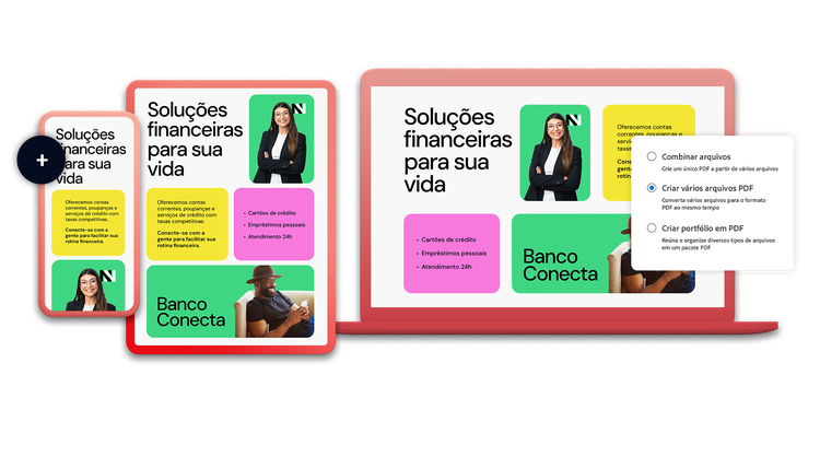 Com poucos toques, dá para converter para PDF arquivos de imagem como JPG, PNG, BMP, GIF e TIFF. O resultado? Um PDF fácil de visualizar com segurança em qualquer dispositivo.
