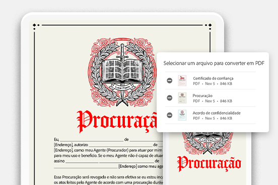 O Adobe Acrobat é mais que um conversor de PDF. Com ele, você pode editar documentos, converter Word para PDF, assinar eletronicamente e compartilhar com rapidez e segurança. Além disso, é possível criar PDF online, fazer PDF em qualquer dispositivo e até reduzir o tamanho dos arquivos para facilitar o envio.