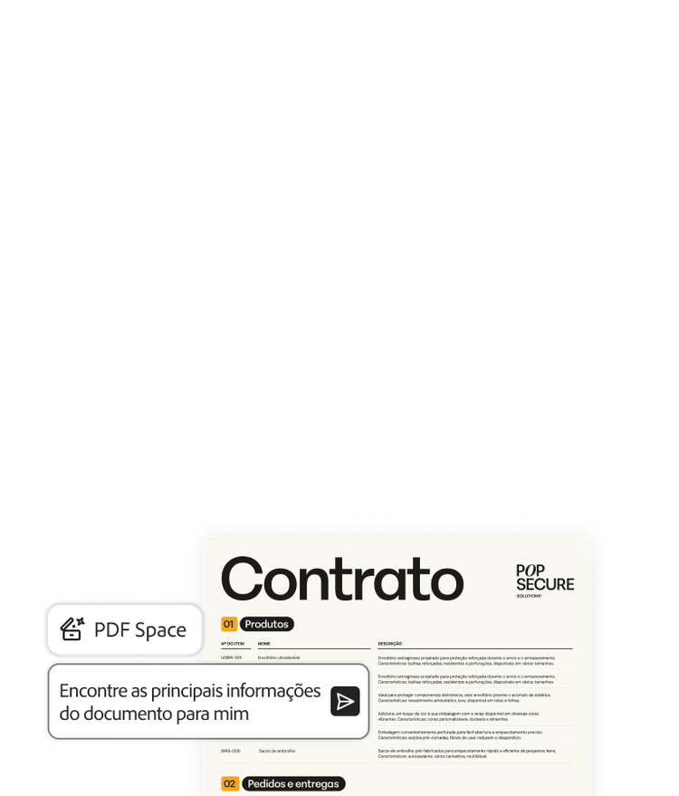 Tenha acesso completo à solução essencial de produtividade. Ferramentas de PDF confiáveis, insights inteligentes de IA e recursos de design intuitivos viabilizados pelo Adobe Express, tudo reunido no Acrobat Studio.