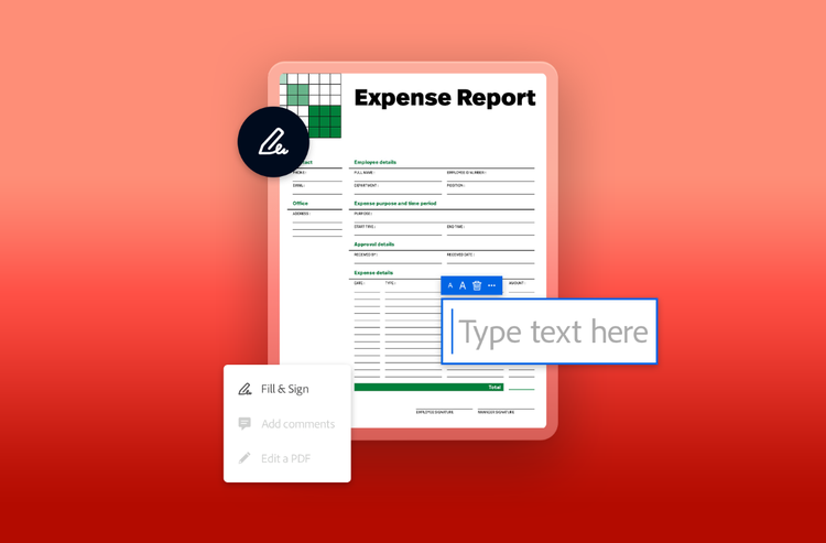 O Adobe Acrobat pode ajudar você a criar modelos organizados para todos os seus relatórios de despesas e mantê-los em formato PDF seguro. Use o Acrobat para preencher e assinar relatórios e simplificar sua contabilidade.