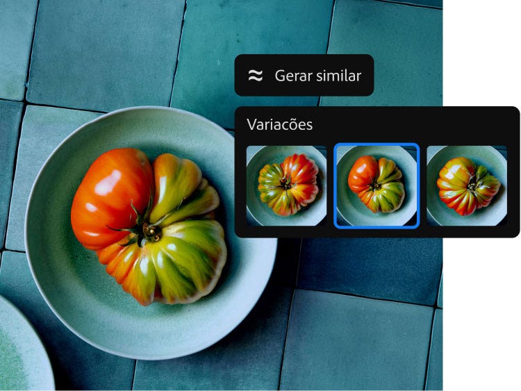Explore e experimente ideias com rapidez. Use o Preenchimento Generativo para criar dezenas de conceitos de alta qualidade com rapidez. E crie variações das suas imagens geradas favoritas com o Gerar similar.