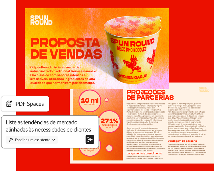 Trabalhe de maneira mais inteligente com recursos viabilizados por IA que transformam documentos em insights e ajudam você a atingir suas metas mais rapidamente. (Disponível no Acrobat Studio ou por meio do complemento Assistente de IA do Acrobat.)