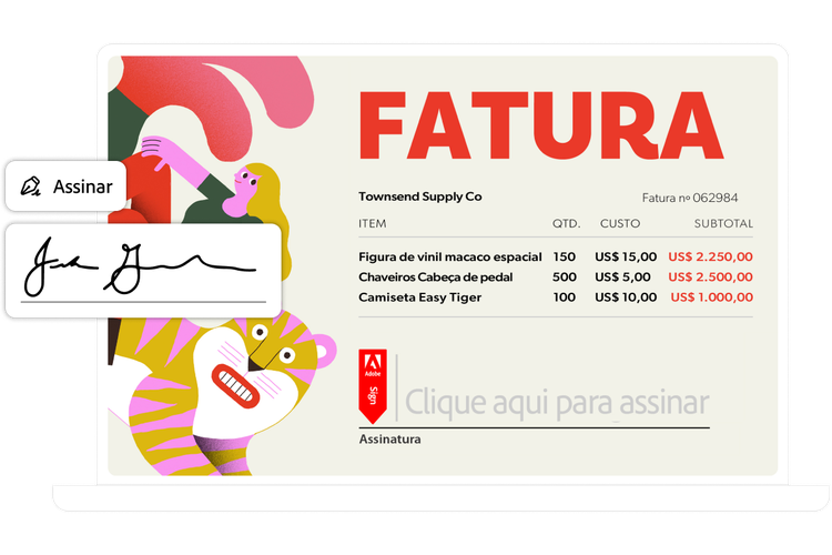 O Acrobat agora inclui mais recursos de assinatura eletrônica para ajudar você a assinar documentos e solicitar assinaturas para sua empresa. Crie uma biblioteca de modelos compartilhada com seus arquivos mais usados, adicione um logotipo e muito mais.