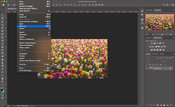 Etapa 5: clique em OK e em Arquivo. Clique em Salvar como para salvar sua imagem.