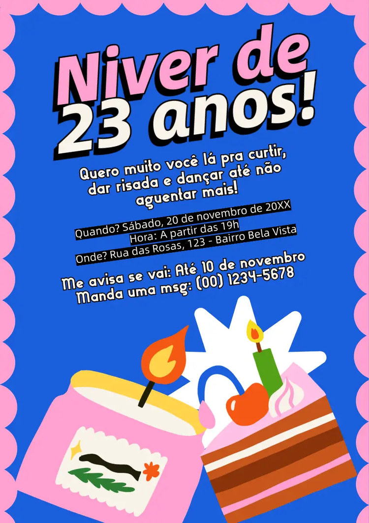 Surpreenda seus convidados com um convite animado feito para brilhar. Seja para um aniversário, noivado ou aquele churrasco especial, o Adobe Express te ajuda a criar convites virtuais animados que chamam atenção. Escolha um modelo pronto ou crie do zero e deixe sua criatividade falar mais alto!