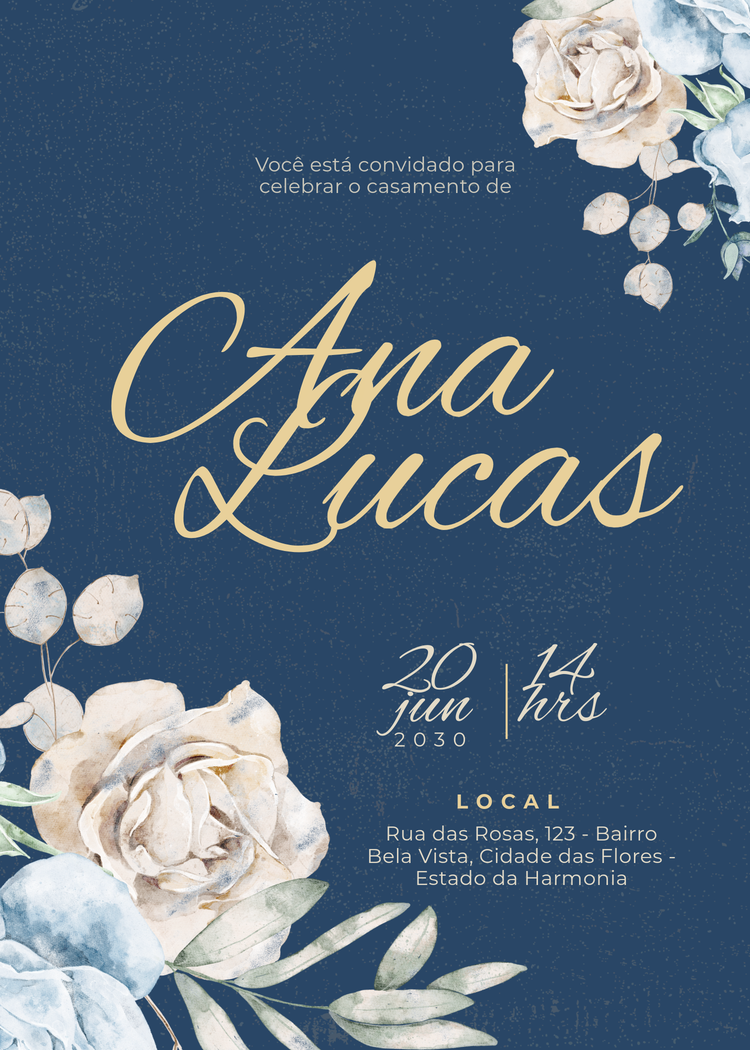 Você já pensou em fazer um curso de design para poder criar seus próprios convites de casamento? Com o Adobe Express, você não precisa fazer cursos nem se estressar, o que é muito importante durante a organização de um casamento. Com os convites de casamento para editar do Adobe Express, você pode combinar imagens, texto e tipografia como um especialista, fazendo uma escolha de cada vez.