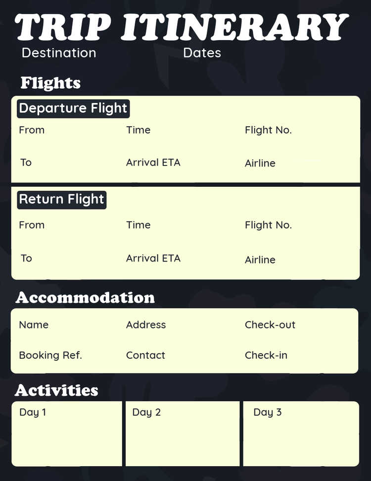 O Adobe Express coloca você na primeira classe da criatividade sem que você precise ler uma montanha de manuais. Experimente nossos templates de roteiros de viagem gratuitos para baixar enquanto se prepara para sua próxima aventura e complemente-o conforme planeja sua jornada. Com o Adobe Express, você pode acessar seu roteiro com facilidade sempre que precisar, fisicamente ou online, e manter sua organização e pontualidade.