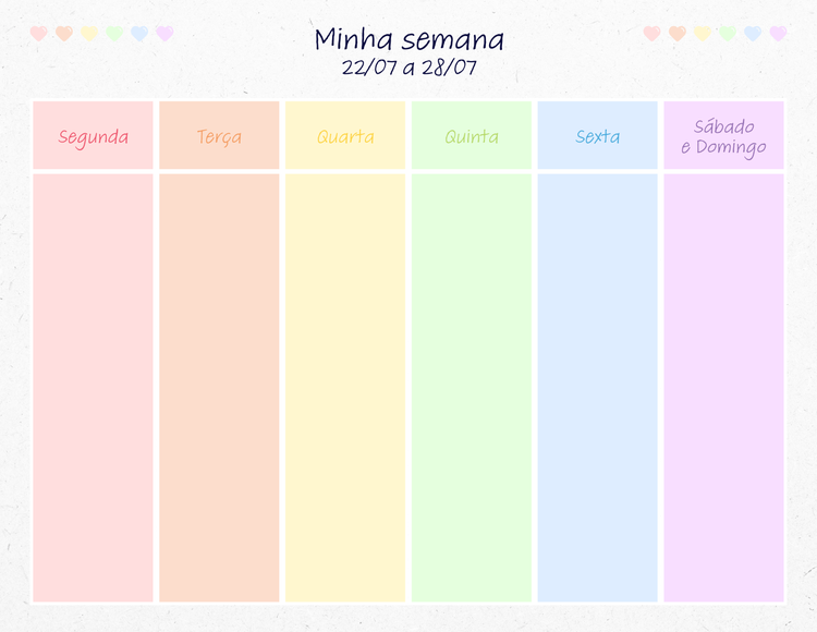 Quer um cronograma que funcione exatamente do jeito que você precisa? Crie o seu próprio do zero no Adobe Express. Ajuste linhas e colunas, defina intervalos de tempo e personalize tudo, desde rótulos até cores. Seja para cronogramas de aulas, planejamento semanal ou controle de turnos, seu cronograma pode ser tão único quanto seu fluxo de trabalho.