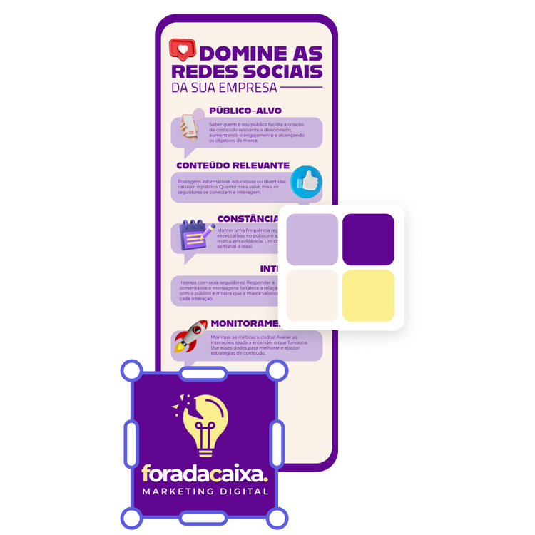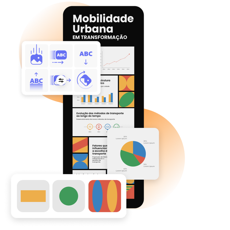 Visualize suas ideias elaborando sua linha do tempo original de forma criativa e clara. Arraste e solte ícones, gráficos de pizza, de linha e muito mais para a sua linha do tempo. Selecione qualquer elemento para balançar, deslizar ou desaparecer aos poucos e oferecer uma experiência visual ainda mais atrativa com os efeitos animados em um só clique do Adobe Express. Baixe seu projeto como GIF ou vídeo e compartilhe em qualquer destino digital. Tudo isso mesmo sem experiência prévia em design e animação.