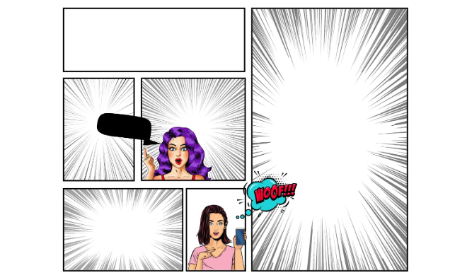 Na animação, é possível usar storyboards para mapear movimentos quadro a quadro, arcos de personagens e timing. Por exemplo, um storyboard para um anúncio de utilidade pública (PSA) animado curto ou para um clipe do TikTok.