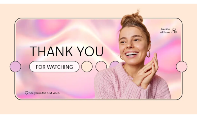 - Portfólio ou apresentações de pitch: Para autônomos ou agências que apresentam trabalho criativo, um slide de agradecimento com sua marca e detalhes de contato facilmente acessíveis facilita o contato.