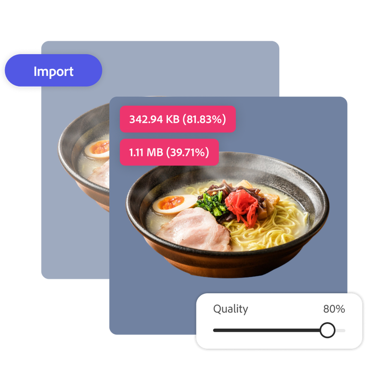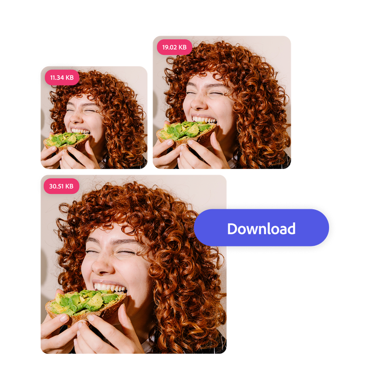 O complemento Image Compressor do Adobe Express oferece resultados rápidos. Basta fazer upload da sua imagem no compactador de imagens e usar a ferramenta de controle deslizante para encontrar o tamanho ideal. Sua imagem estará pronta para uso imediato em sites, informativos ou em qualquer outro lugar onde você queira melhorar a experiência do usuário sem deixar de exibir suas imagens.