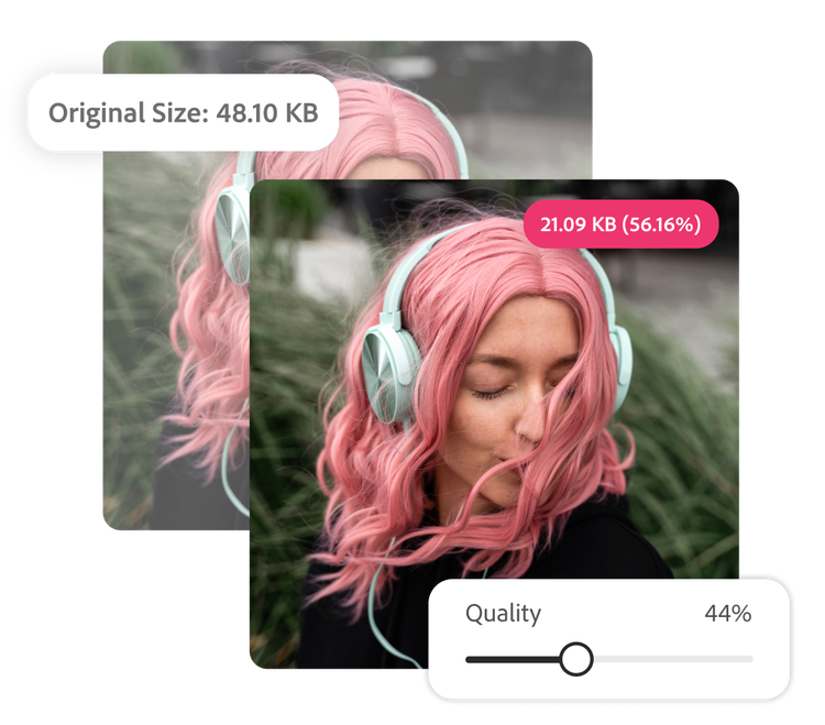 Economize tempo compactando uma imagem diretamente no Adobe Express. O complemento HARMAN Image Compressor no Adobe Express proporciona controle total sobre o redimensionamento de imagens com resultados rápidos.