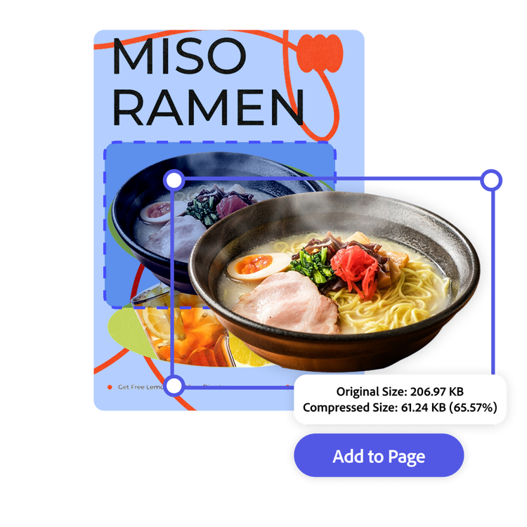 Compacte seus arquivos JPEG em um só lugar no Adobe Express. Você pode até usar imagens com as quais está trabalhando diretamente no editor do Adobe Express sem precisar baixá-las primeiro. Finalize projetos mais rapidamente quando você não precisar ficar alternando entre programas para realizar tarefas diferentes. Clique em Adicionar à página para continuar editando ou baixe o novo arquivo JPEG.