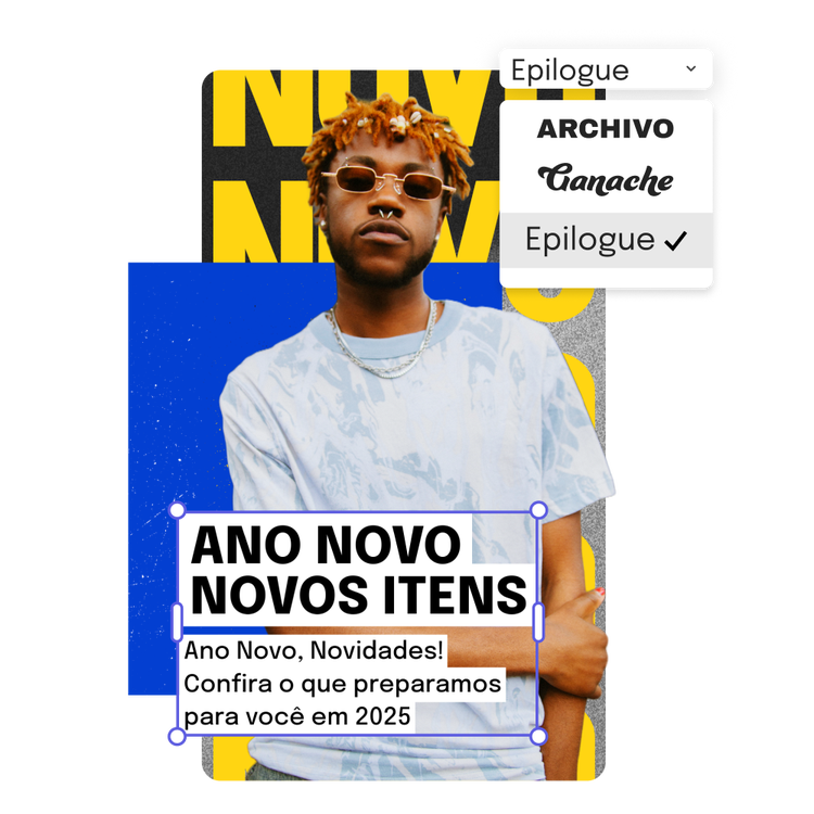Transforme sua imagem recém-editada em um flyer, post na rede social, capa de álbum, foto de perfil e vários outros designs. Comece explorando nossa biblioteca de templates para iniciar seu projeto no editor de fotos. Depois acrescente outros elementos de design, fontes, ícones ou GIFs para personalizar sua imagem. As opções para deixar seu material surpreendente são infinitas.