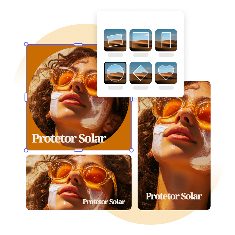 Após deixar sua foto ou design perfeito, use a ferramenta Redimensionar para descobrir uma vasta seleção de opções de formatação de imagem. Escolha entre vários tamanhos de posts e fotos de perfis para redes sociais, além de formatos para impressão. Brinque com os recortes em forma de coração, estrela e circulares nas suas imagens. No menu Editar, explore o recurso de recorte e forma para girar, alterar o tamanho, deslocar ou virar sua foto até que o design fique perfeito.