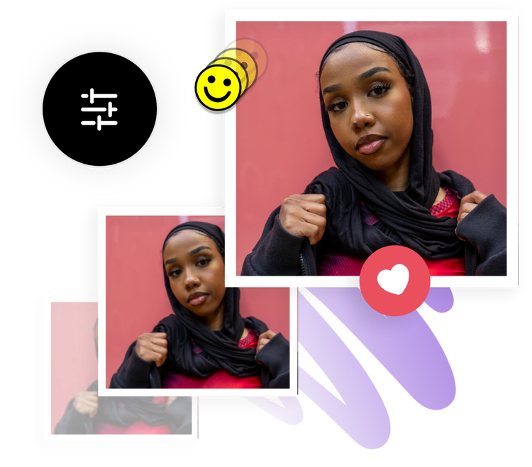 O Adobe Express incentiva a sua criatividade e a testar novas ferramentas. Melhore a qualidade da sua imagem, recorte-a, adicione um filtro e transforme-a em algo completamente novo. E você também pode reverter qualquer mudança feita e voltar à versão original sempre que quiser. Divirta-se descobrindo seu estilo pessoal com a ajuda do Adobe Express.