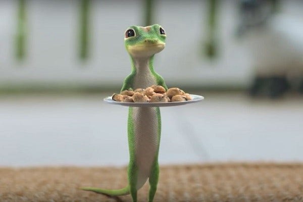 - A Geico lançou o Geico Gecko para trazer leveza ao setor de seguros por meio de um pequeno réptil australiano que realiza atividades cotidianas para ajudar você a economizar dinheiro de maneira simples. O humor está nos pequenos absurdos, como uma lagartixa assar biscoitos enquanto você usa a Geico para economizar no seguro do seu carro.