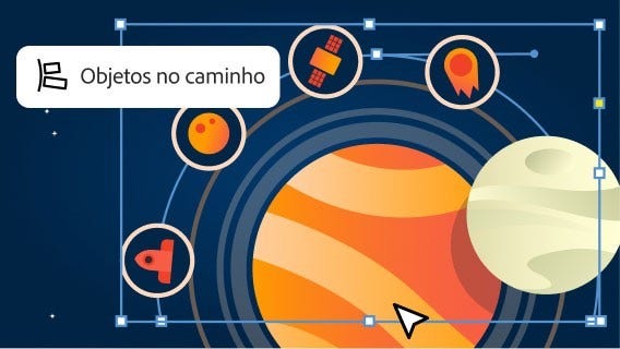 Use o recurso Objeto no caminho para alinhar vários objetos em um só caminho e movê-los e distribuí-los ao mesmo tempo.