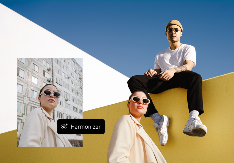 Em vez de criar composições feitas apenas de recortes e colagens, utilize o recurso Harmonizar, viabilizado por IA generativa para suavizar bordas ásperas e corrigir diferenças na iluminação, fazendo com que as imagens mescladas pareçam capturadas juntas. Essa ferramenta é ideal para visuais de marketing, conteúdo para redes sociais ou narrativas criativas. Melhore a edição de imagens por IA.