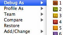 Utilisez les fonctionnalités Debug As et Attach As pour prévisualiser vos extensions et les débugguer directement dans les applications Creative Suite et Creative Cloud, définir des points d'arrêt et repérer les erreurs.