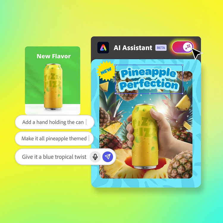 Generative AI meets quick and easy editing with AI Assistant (beta). Make sweeping changes to your design while keeping the parts you love intact.