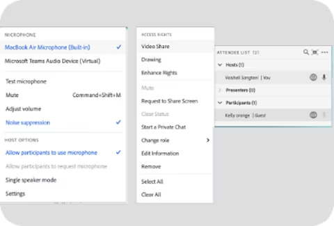 Tight classroom governance with advanced role-based privileges, controlled access, and in-room participation for learners.