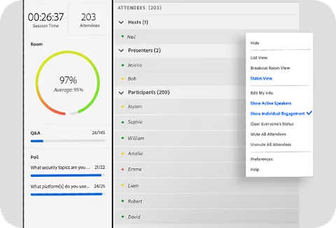 Post session consolidated reporting on class interactions, participation and session effectiveness.