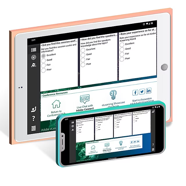 No app or add-ins to download. With new HTML browser clients, leverage almost all capabilities with a single click, right from the browser. The best webinar hosting platforms will never miss the audience whose IT policy may prohibit web downloads. Host, share, collaborate, and train anywhere, anytime, with the Adobe Connect mobile app for Android and iOS. Download Now ›