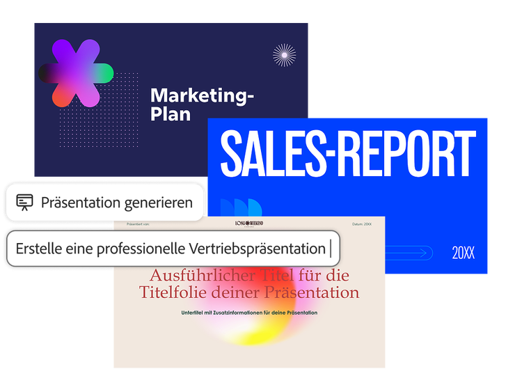 Verwandelt Dokumente mit KI in Präsentationen, erstellt Content wie Angebote und Berichte aus über 500.000 professionellen Vorlagen und generiert eure eigenen Bilder.