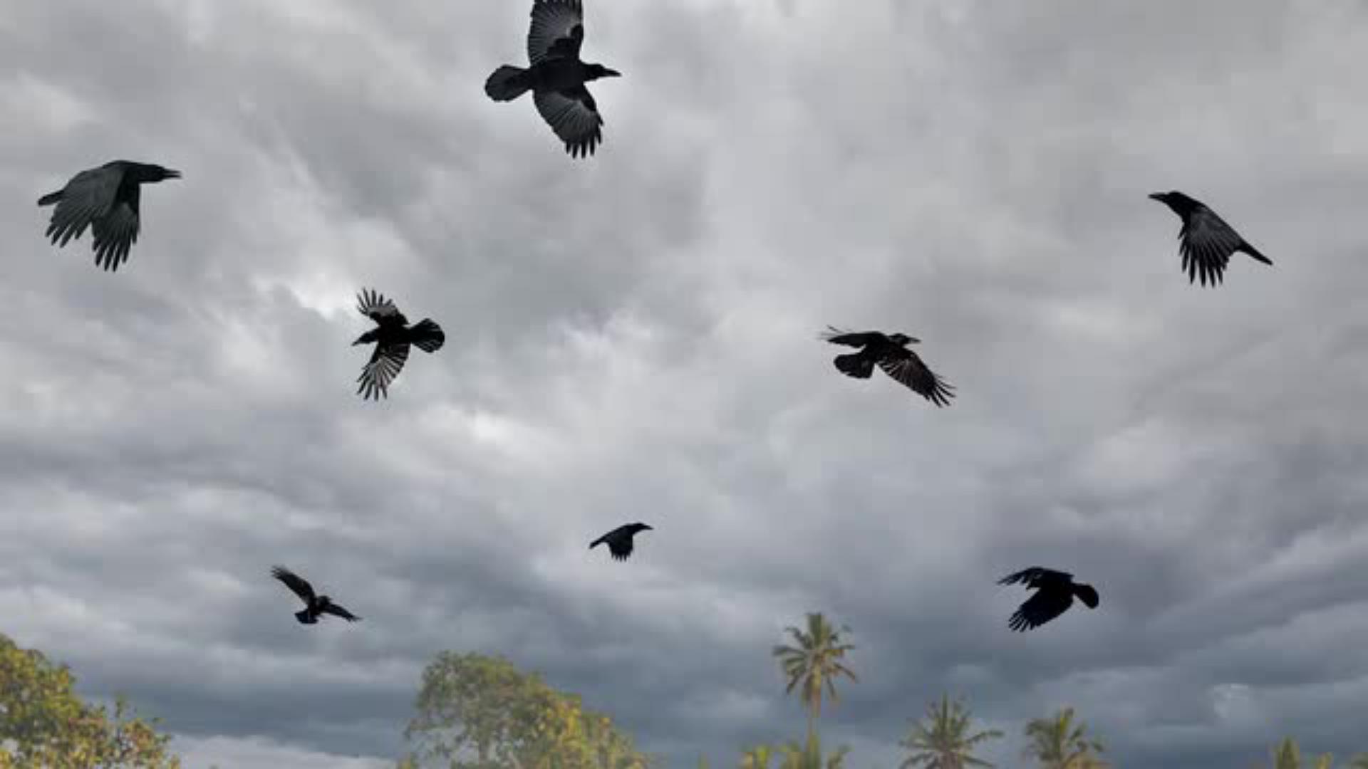 Dann erstellst du mithilfe der Generativen KI mehrere Raben – einige fliegend, andere sitzend. Sie verleihen dem Bild eine Hauch Horror und geben ihm Bewegung und Tiefe.