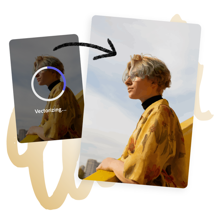 Adobe Express 快速操作工具可让您随时随地进行引人注目的编辑。只需几秒钟,即可直接从您的设备轻松上传 JPG 或 PNG 图像,并将其转换为 SVG。立即下载新的 SVG,随后即可使用 - 与朋友或关注者共享或在将来的项目中使用它。