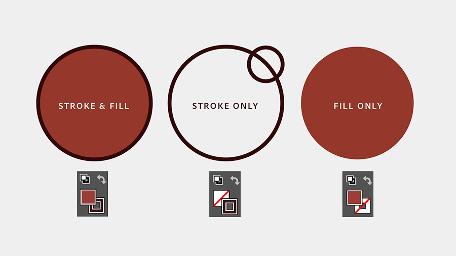 您可以随时删除对象的填充色和描边色,只需点击显示红线的“None”(无)按钮即可。按 X 或点击双箭头可快速切换切换填充色和描边色。
