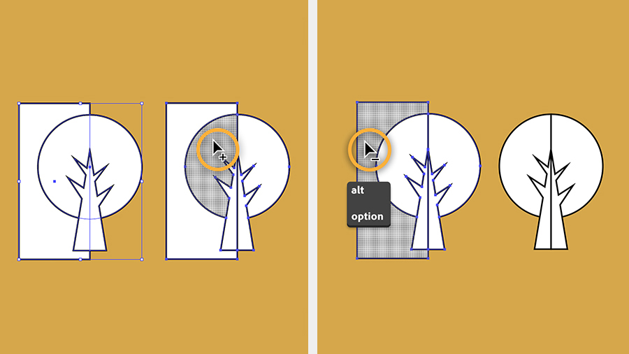 分解和删除重叠的图形也非常简单。选择所有图形。选中“Shape Builder”(形状生成器),像使用饼干切割器一样,点击您要删除的部分。不必担心没有选中的部分也会被删除,因为您已经把它们分成了单独的部分。