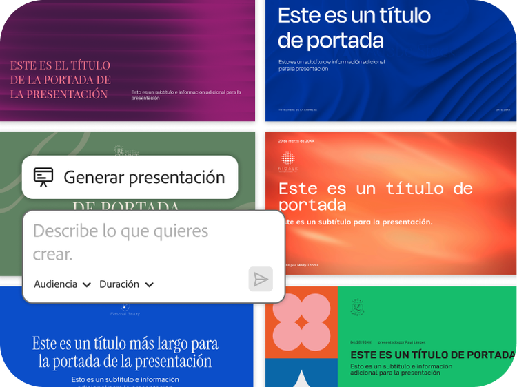 Genera presentaciones comerciales, publicaciones para redes sociales, volantes y más con solo una indicación. Dales vida a las ideas con plantillas profesionales.