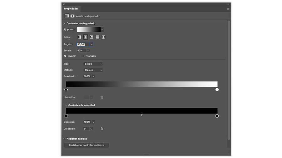 Ángulo: Define la dirección del degradado (ej. 90°, 45°).
