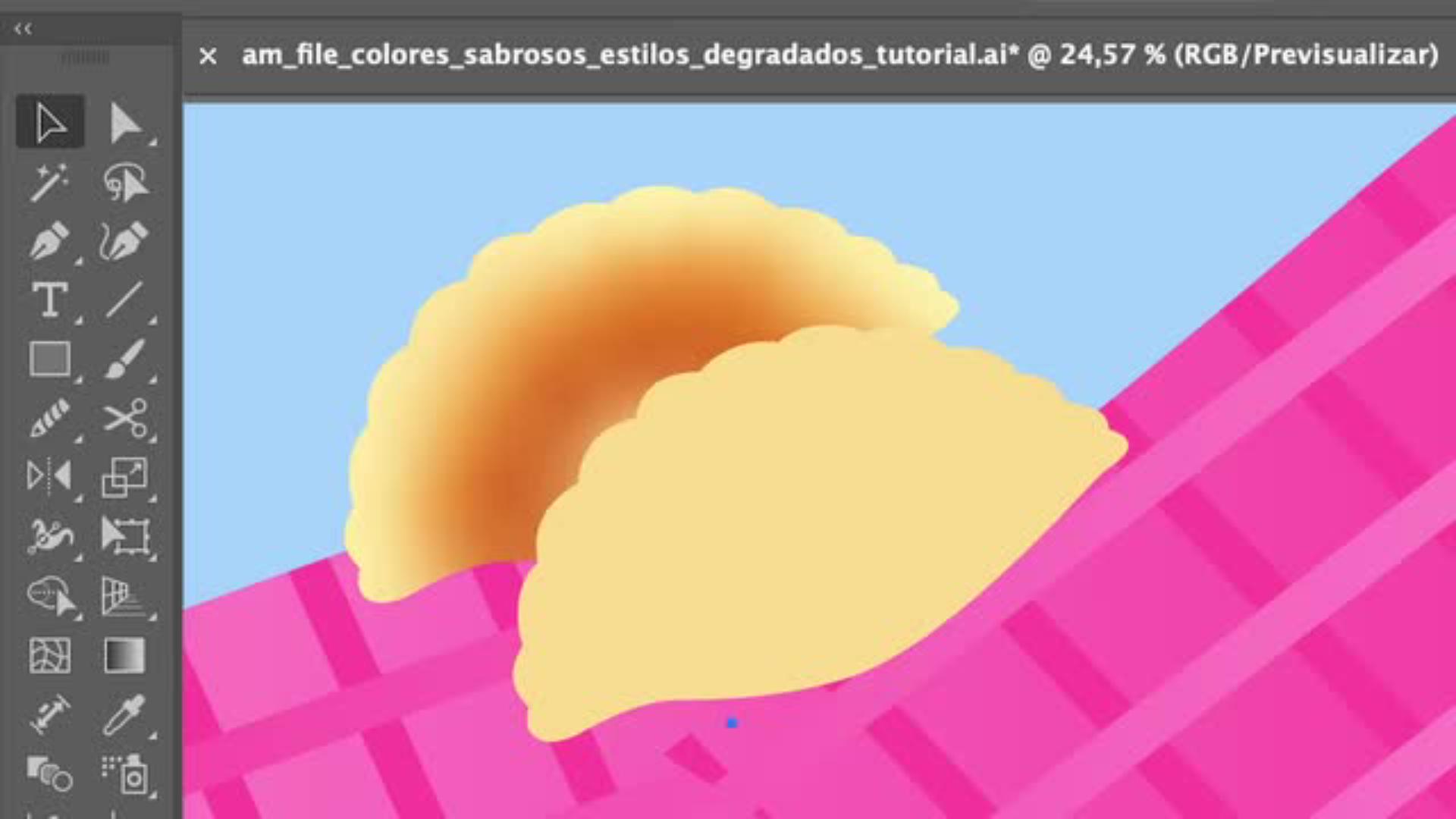Para el efecto "quemadito" de las empanadas, Ari usa el degradado de forma libre (también conocido como degradado de puntos).