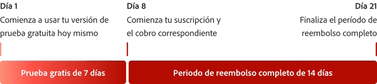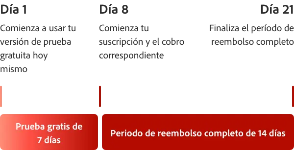 Prueba Acrobat Pro gratis durante 7 días. Si necesitas más tiempo para probar todas las funciones, tienes 14 días adicionales para cancelar y obtener un reembolso completo.