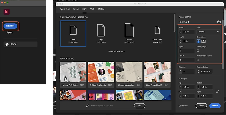 The first step is to open InDesign and create a new document. You can do this in a couple of ways: