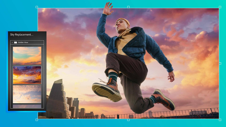 Discover endless sky options with Sky Replacement in Photoshop. Enhance your scenery with serene blue skies, dramatic sunsets, and more, creating captivating visuals from tranquil scenes to dramatic vistas.