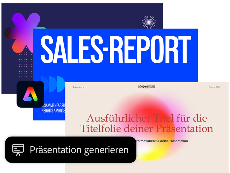Verwandle Dokumente mit KI in beeindruckende Präsentationen. Wähle aus über 500.000 professionellen Vorlagen, generiere individuelle Bilder – bereitgestellt von Adobe Express.