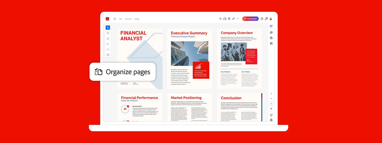Ordne Seiten neu an, füge Seiten aus anderen PDF-Dokumenten ein, oder extrahiere einzelne PDF-Seiten. Formularfelder, Kommentare und Links gehen nicht verloren. Lösche Inhalte, die du nicht brauchst.