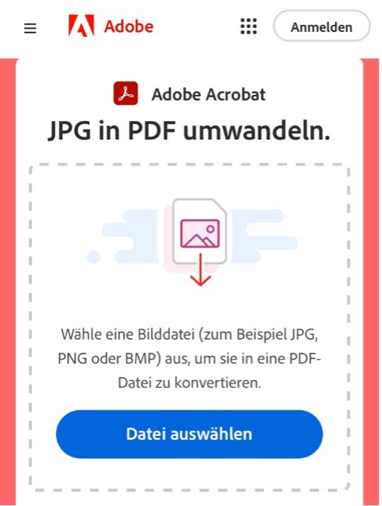 Mit Acrobat Onlinetools JPG in PDF auf dem Handy umwandeln