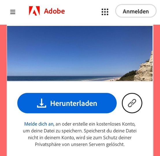 - Nach einem gratis Testlauf ein kostenloses Konto für die Acrobat Onlinetools