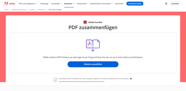 - Öffne das Onlinetool „PDF zusammenfügen“.