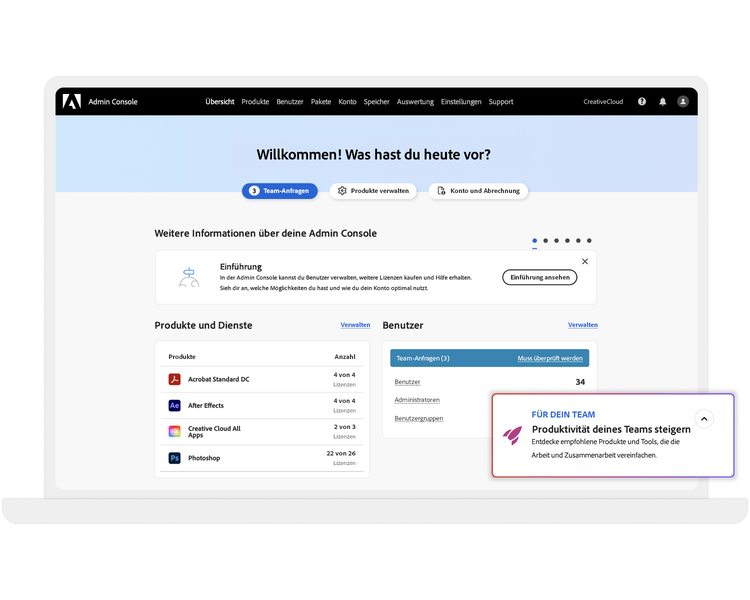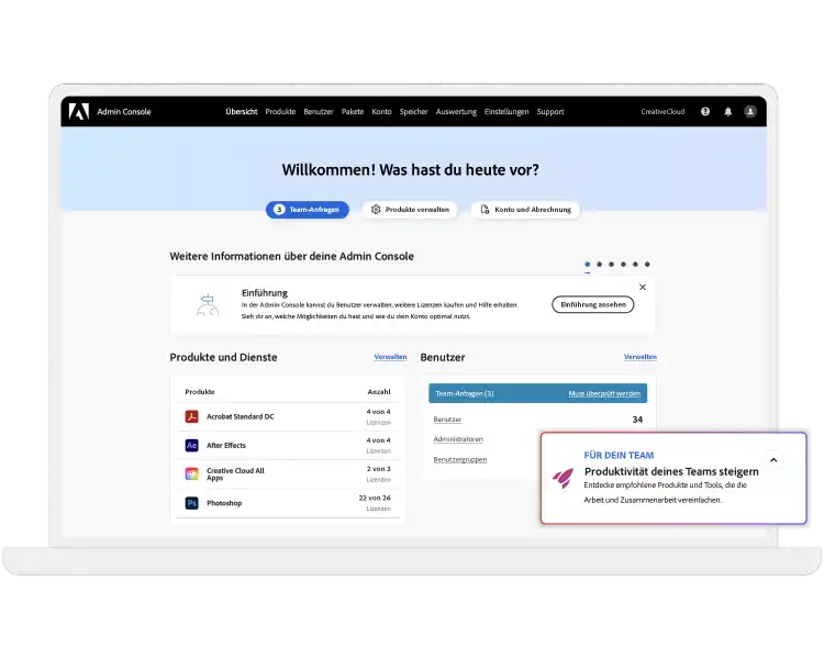 In der zentralen Admin Console könnt ihr Lizenzen eures Unternehmens zuweisen und neu zuweisen. Zusätzlich werden Abrechnung und Budgetierung vereinfacht.