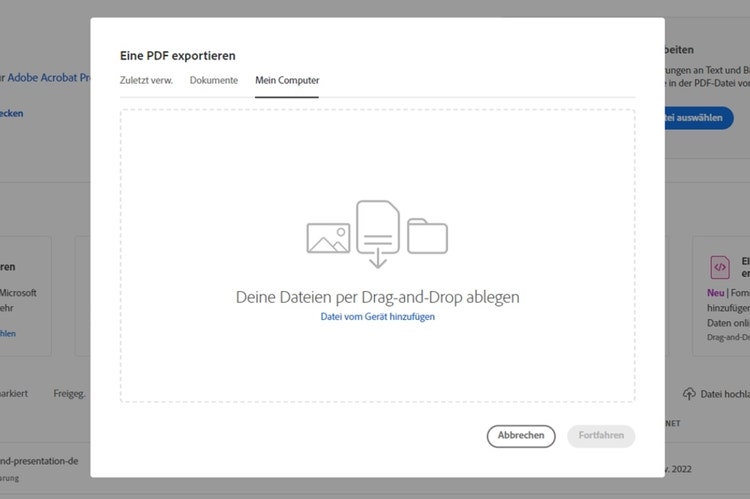 Schritt 2: Dateien in Adobe Document Cloud hochladen.