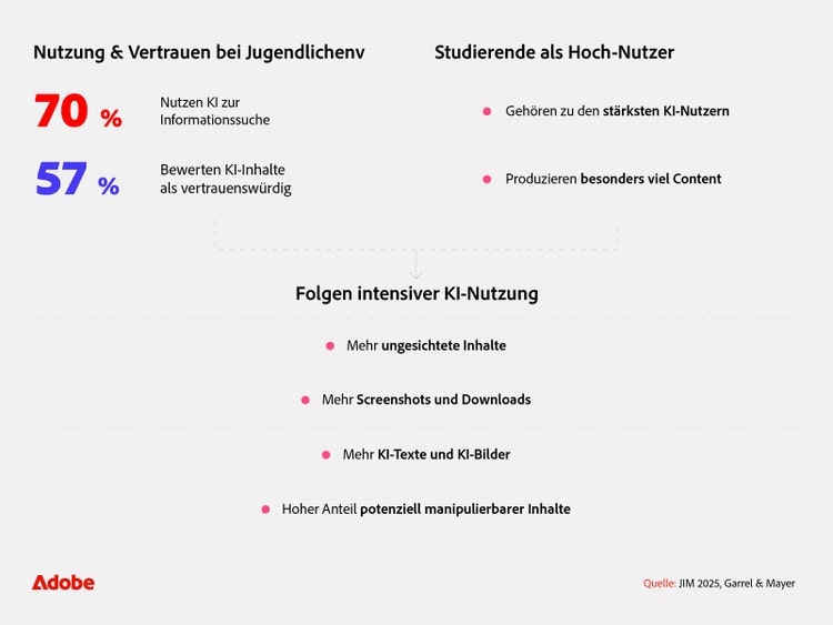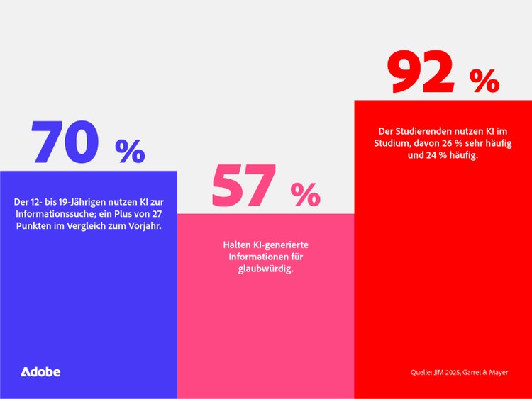 - 57 % der Jugendlichen halten Informationen von KI-Tools für glaubwürdig und haben somit großes Vertrauen in KI.