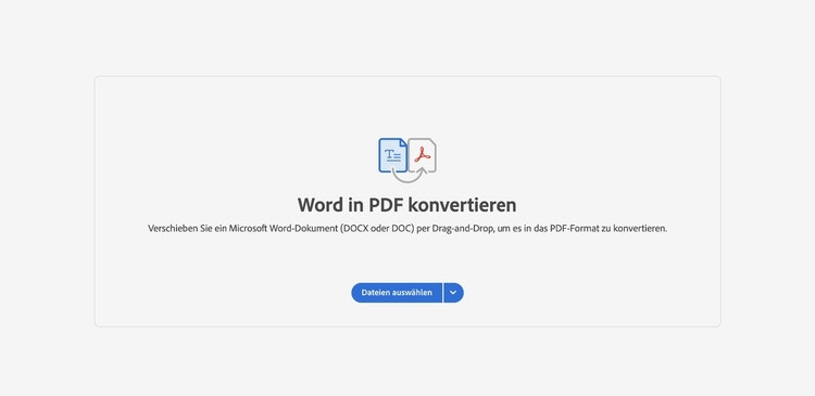 Das Onlinetool von Acrobat zum Konvertieren einer Word-Datei in PDF.
